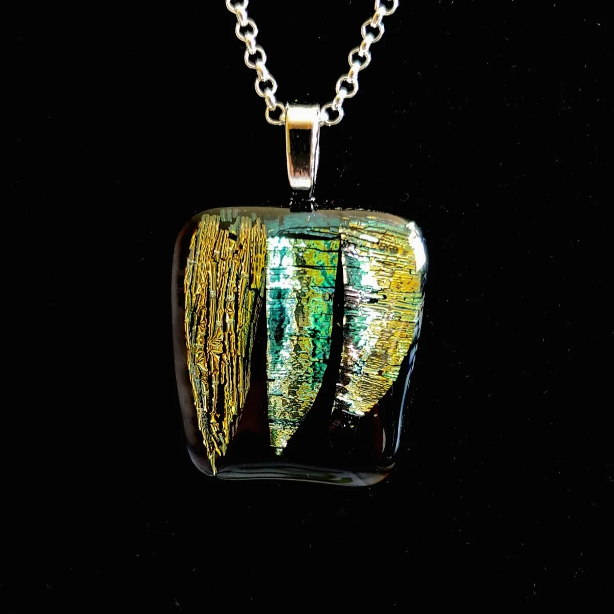 A decorative glass art piece featuring three colorful fish, various aquatic plants, and bubbles, set against a blue ocean background with speckled bubble effects.